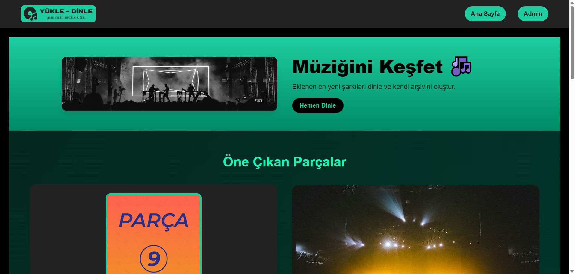 Yönetici paneli üzerinden kontrol edilebilen müzik dinleme web uygulaması