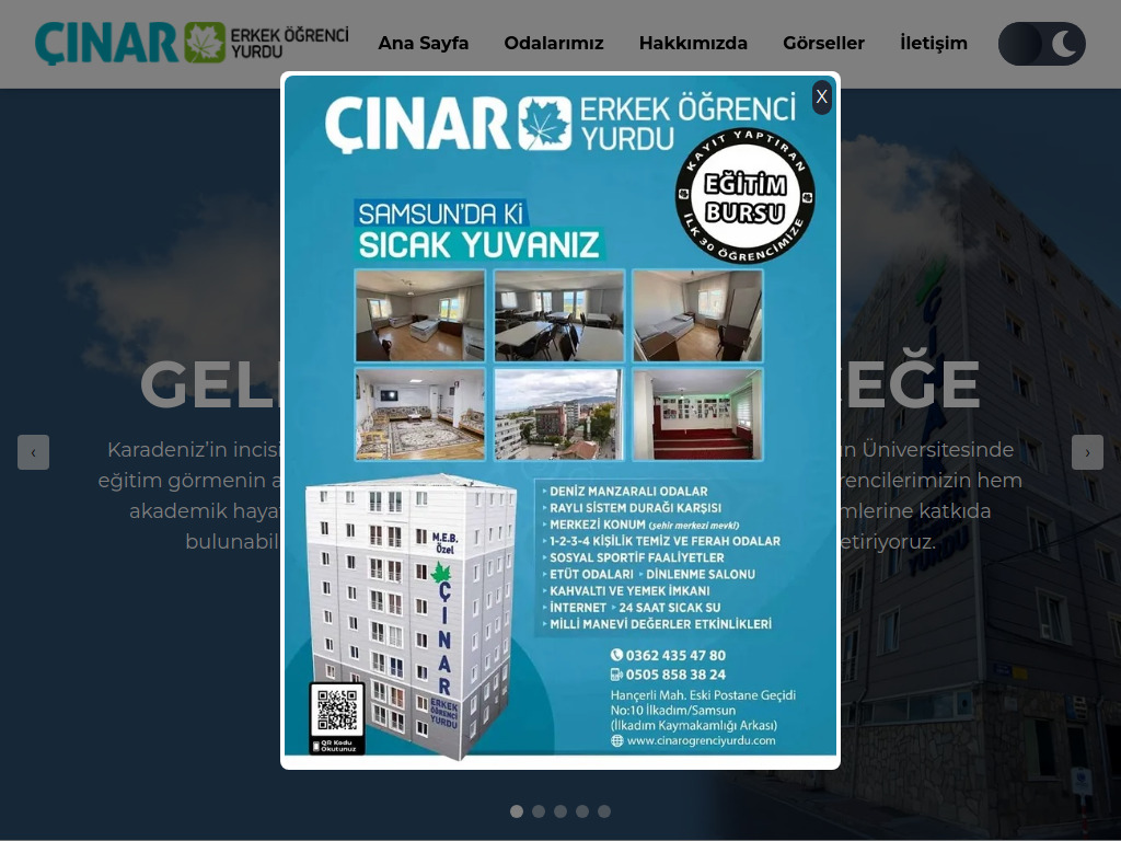 Özel Çınar Erkek Öğrenci Yurdu için hazırlanan websitesi