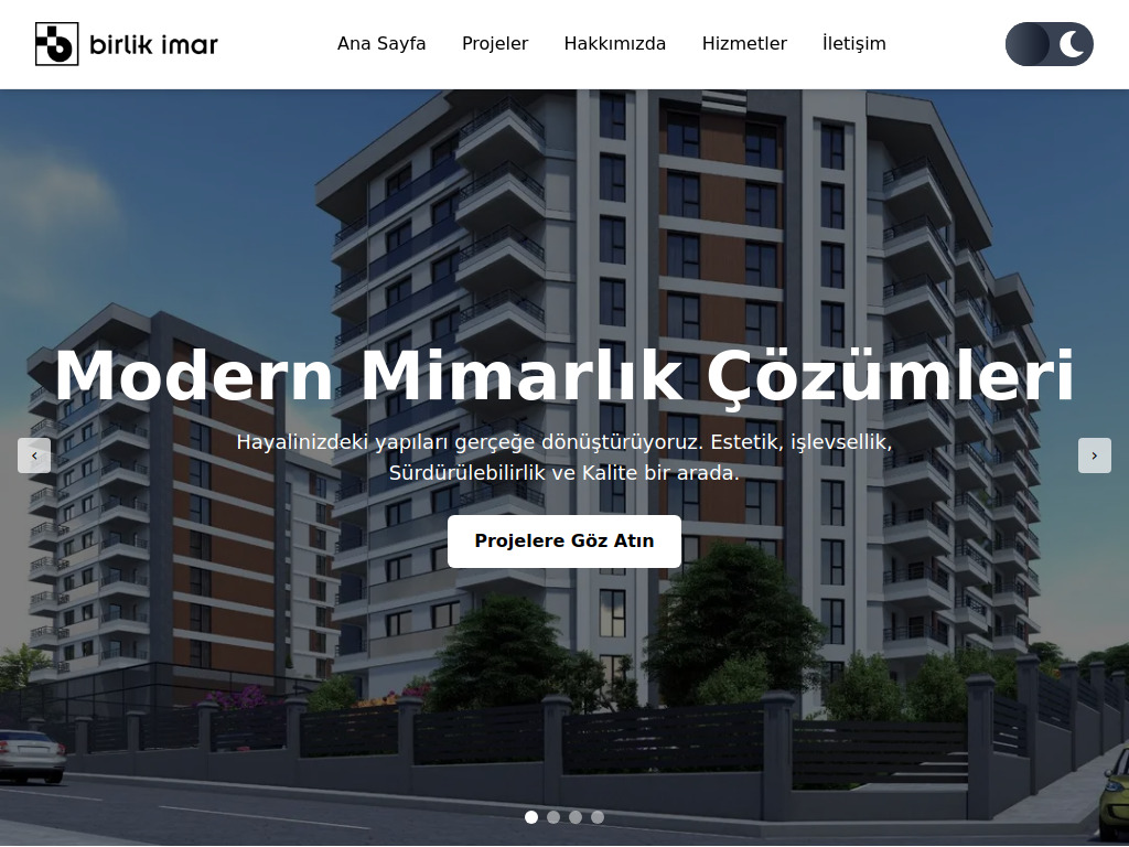 Birlik İmar için hazırlanan mimarlık, inşaat ve gayrimenkul web sitesi