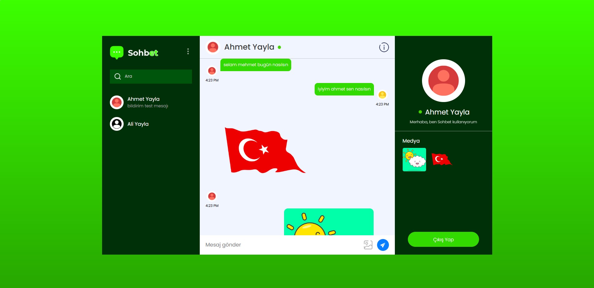 Anlık mesajlaşma ve bildirim sistemi içeren, Sohbet Et isimli web uygulaması