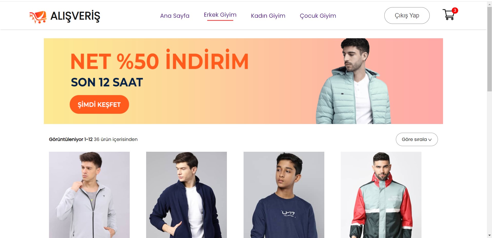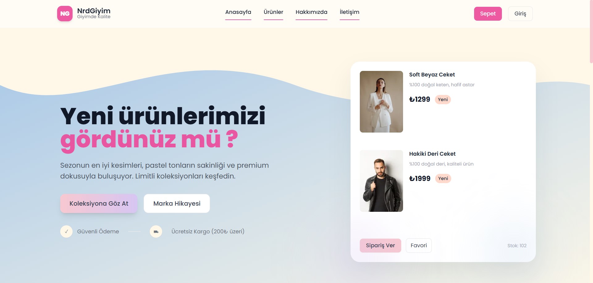Kullanıcı işlemleri, sipariş oluşturma ve yönetici paneli bulunan giyim web uygulaması